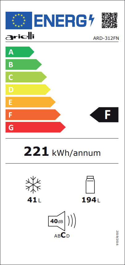 Arielli ARD-312 FNE Ψυγείο Δίπορτο 235lt, F (Υ159xΠ55xΒ55εκ) Λευκό