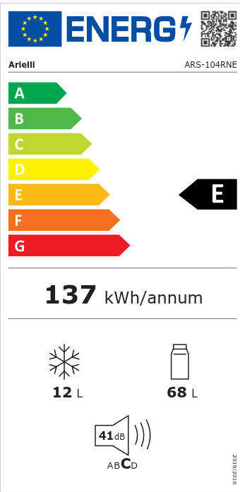 Arielli ARS-104RNE Ψυγείο Mini Bar 80lt, E (Υ84,5xΠ47,5xΒ44,5cm) Λευκό