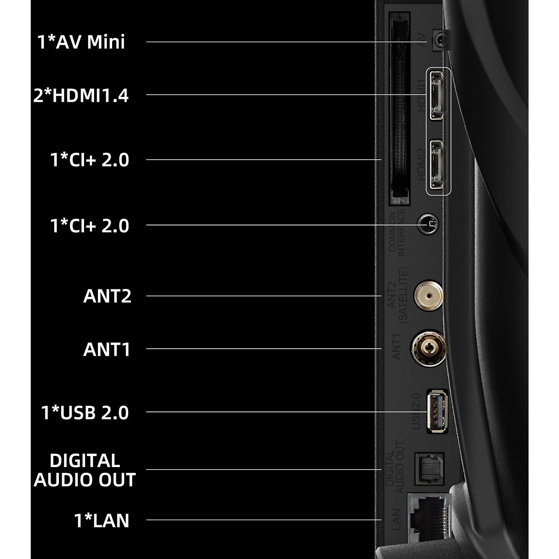 Είσοδοι/έξοδοι: CI/CI+, ψηφιακή οπτική/ψηφιακή έξοδος ήχου, HDMI 1.4 και παλαιότερη έκδοση, έξοδος ακουστικών, LAN, USB