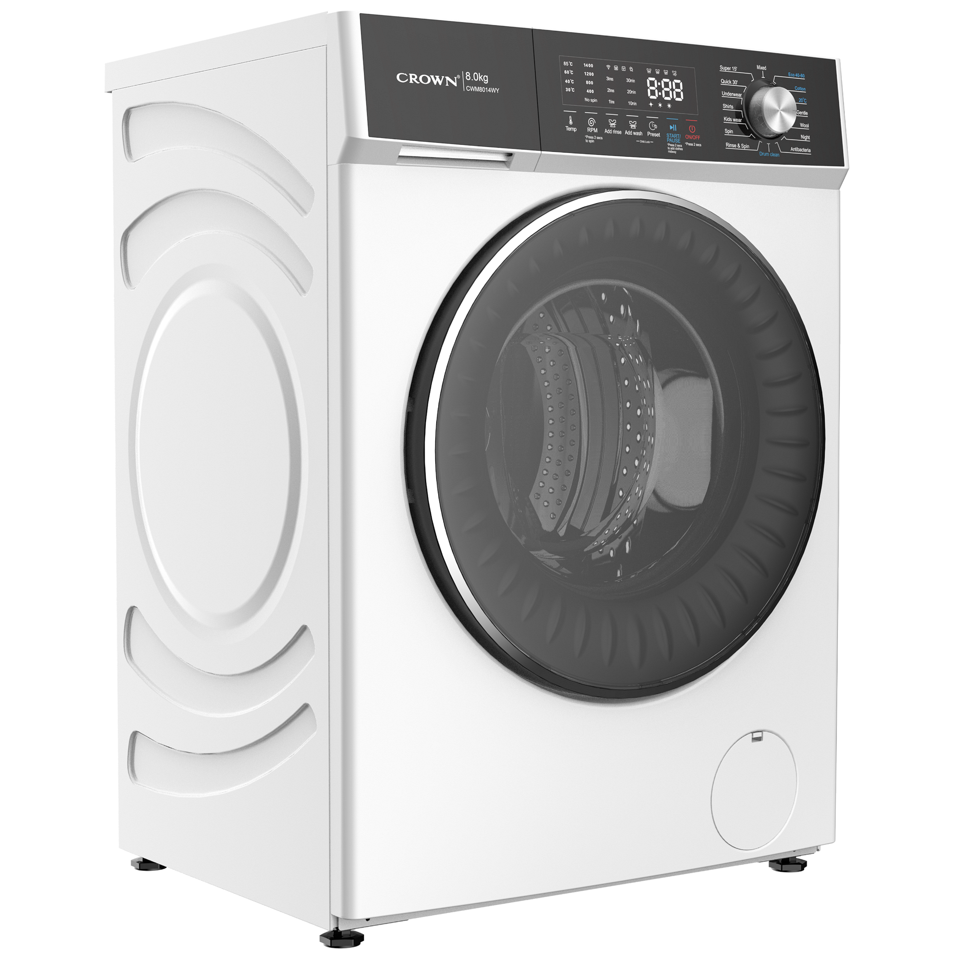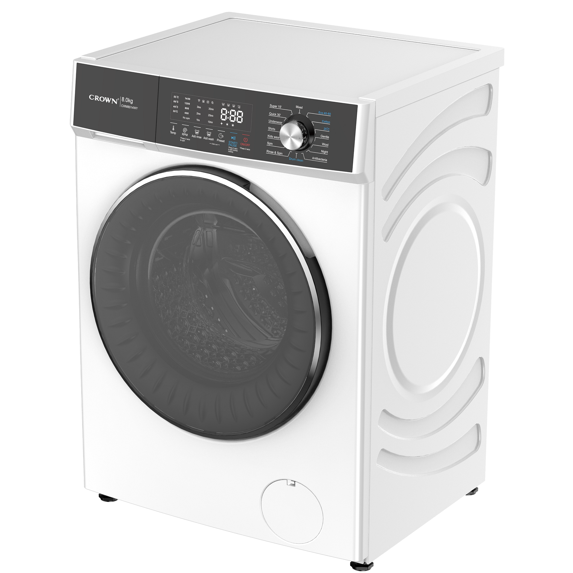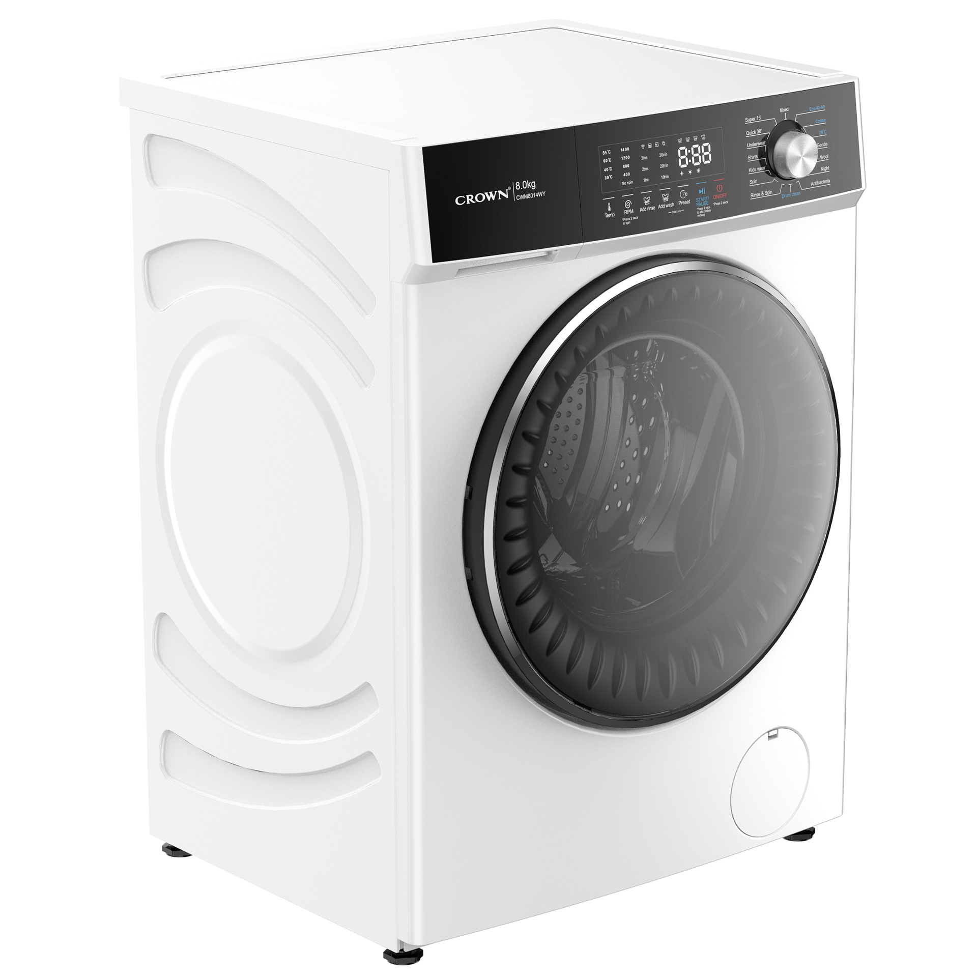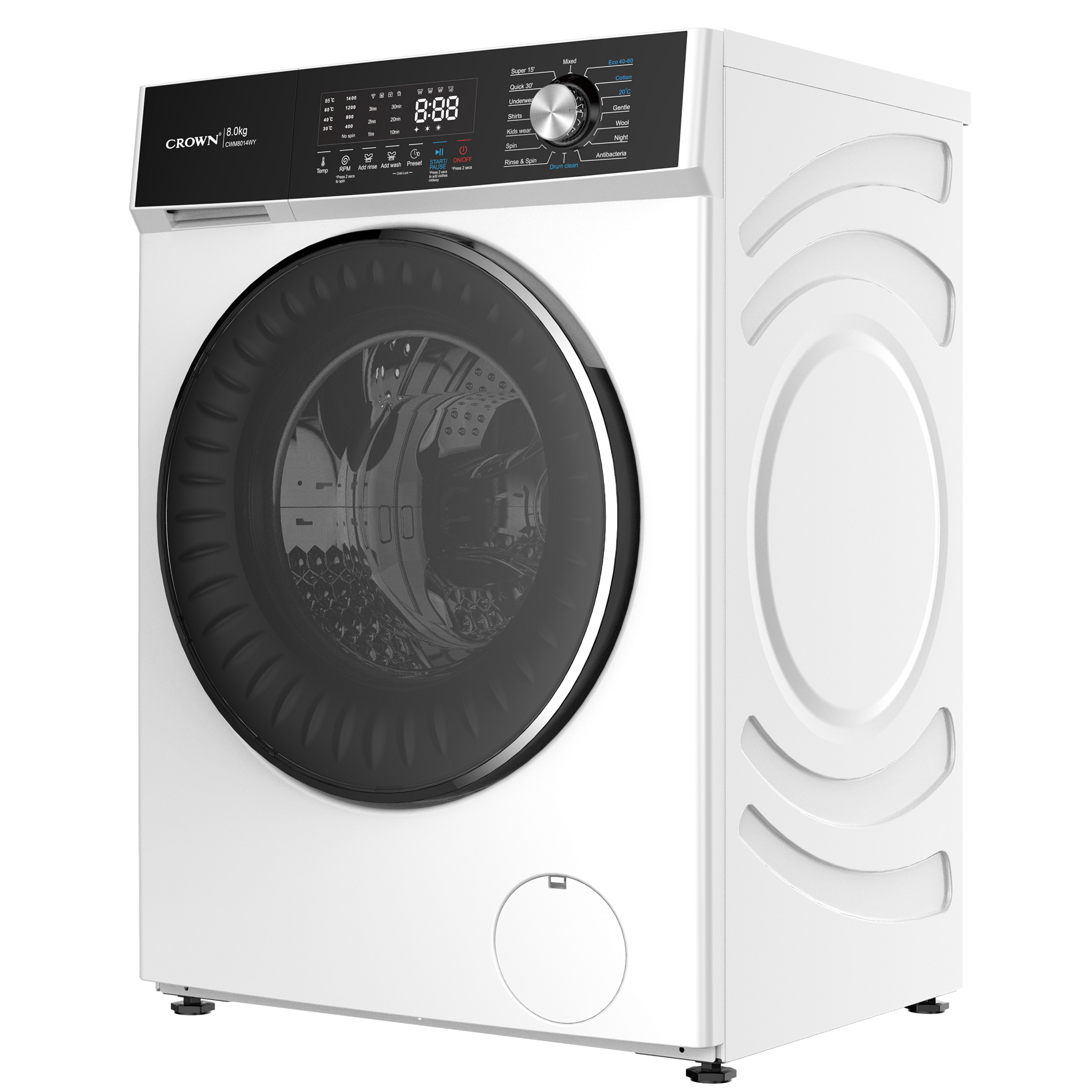 Crown CWM8014WY Πλυντήριο Ρούχων 8kg, 1400 Στροφών, Α, Λευκό