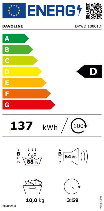 Davoline DRWD 10001D Στεγνωτήριο Ρούχων 10kg, με Αντλία Θερμότητας, D, Λευκό (3 Έτη Εγγύηση)