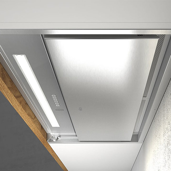 Κατόπιν παραγγελίαςΤο σύστημα περιμετρικής εξαγωγής επιτρέπει σε αυτόν τον απορροφητήρα να παραμένει κρυμμένος χωρίς να επηρεάζει τα ντουλάπια. Ενεργοποιείται αυτόματα όταν ανιχνεύει καπνό και συνδέεται με την εστία και την εφαρμογή Elica.