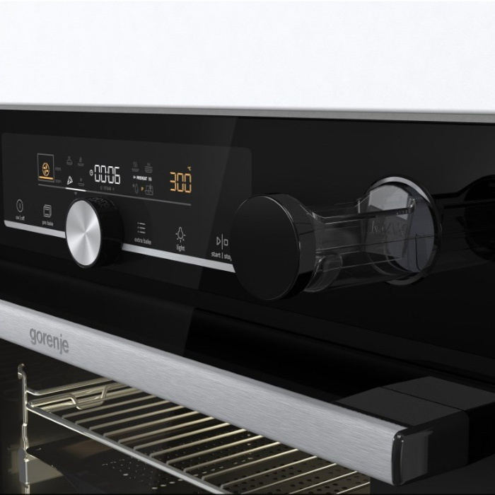 Χάρη στην λειτουργία μαγειρέματος με ατμό, ο φούρνος μετατρέπεται σε ατμομάγειρα για πιο υγιεινό φαγητό. Επιπλέον, είναι αυτοκαθαριζόμενος λόγω του συστήματος πυρόλυσης αφαιρώντας αποτελεσματικά λίπος και καμένα τρόφιμα, ακόμη και σε δυσπρόσιτα σημεία του φούρνου χωρίς τη χρήση απορρυπαντικού. Ένα μειονέκτημα της λειτουργίας πυρόλυσης είναι ότι καταναλώνει πολύ ρεύμα επειδή η θέρμανση φτάνει σε πολύ υψηλή θερμοκρασία. Ο τηλεσκοπικός μηχανισμός που έχει, βοηθά να βάζετε και να βγάζετε τις σχάρες με ευκολία και ασφάλεια. Τέλος, με την ψηφιακή οθόνη μπορείτε να βλέπετε την θερμοκρασία και να ρυθμίζετε εύκολα τις λειτουργίες ψησίματος.