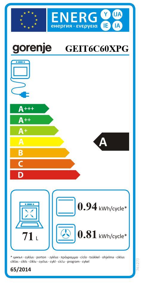 Χωρητικότητα Φούρνου: 71 lt