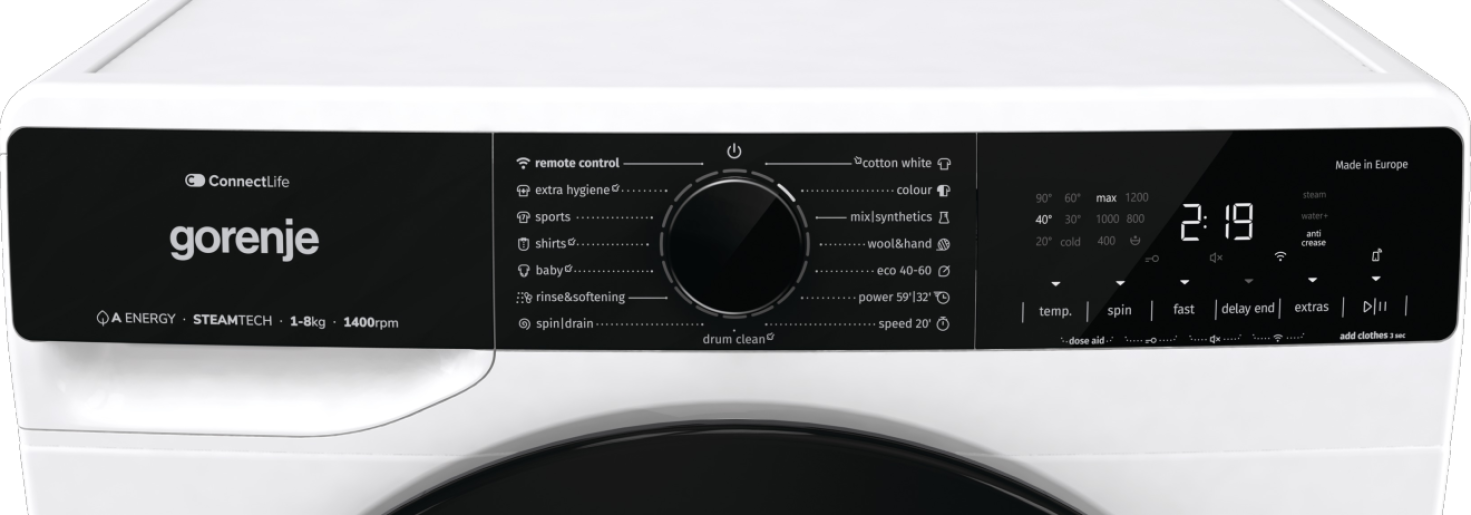Gorenje WPNA84A2TSWIFI Πλυντήριο Ρούχων 8kg, 1400 Στροφές, με Ατμό & Wifi, Α, Λευκό