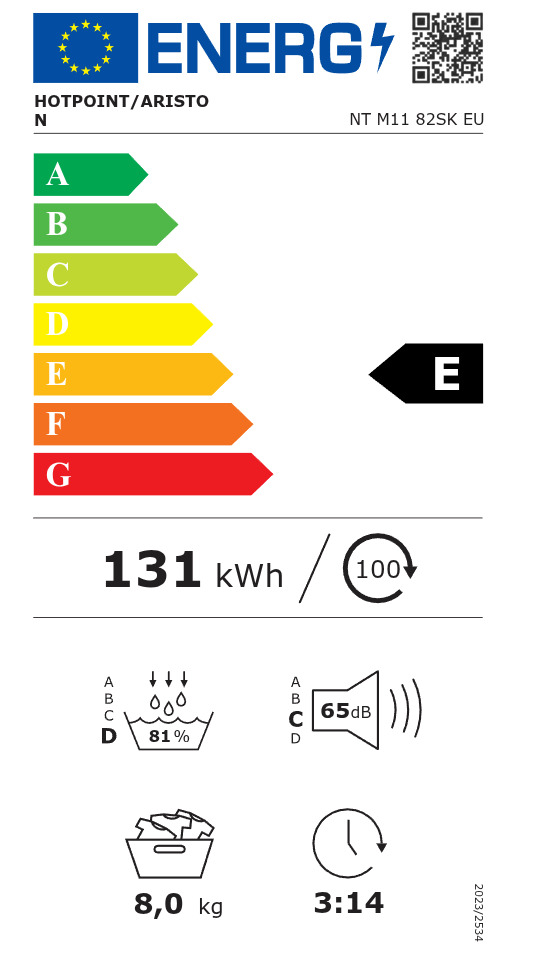 Hotpoint-Ariston NT M11 82SK EU Στεγνωτήριο Ρούχων 8kg, με Αντλία Θερμότητας, E, Λευκό