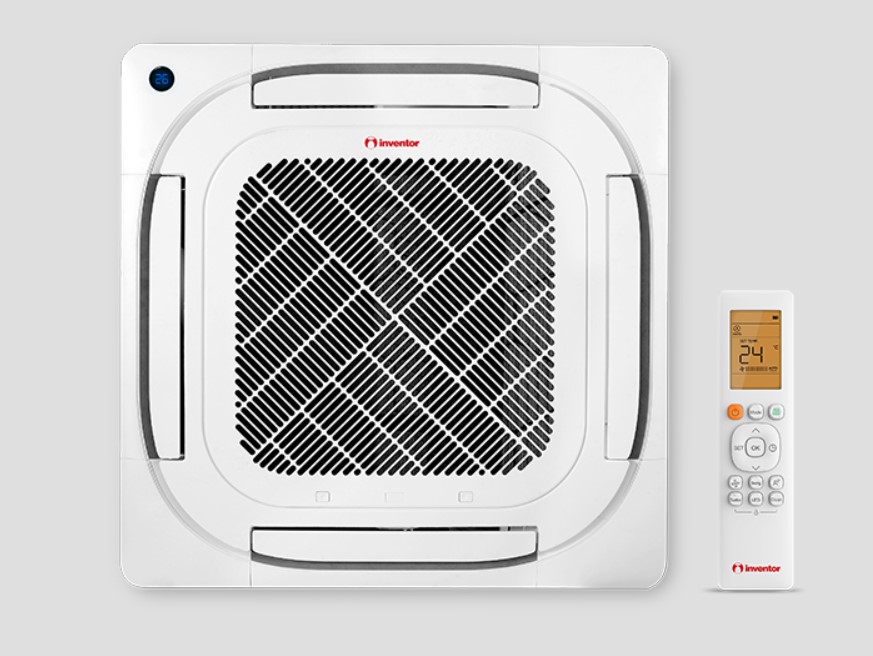 Παράδoση 4 έως 10 ημέρεςΚλιματιστικό τύπου κασέτα της εταιρείας Inventor, με ενεργειακή κλάση A++/A+++. Έχει ισχύ ψύξης 24000 BTU και θέρμανσης 26000 BTU κάτι που το καθιστά ιδανικό για χώρους από 40 έως 80 τετραγωνικά μέτρα. Τοποθετείται στην οροφή του χώρου ενσωματωμένο σε ψευδοροφή, αλλά και ελεύθερο αν δεν είναι απαραίτητο για εσάς το εικαστικό κομμάτι. Η εξαγωγή του αέρα γίνεται μόνο από το σημείο στο οποίο είναι εγκατεστημένη η εσωτερική μονάδα, σε αντίθεση με τα καναλάτα κλιματιστικά όπου μπορούν να τοποθετηθούν πολλαπλά σημεία εξαγωγής αέρα. Λειτουργεί με ψυκτικό υγρό R32 που έχει ως αποτέλεσμα μεγαλύτερη απόδοση, οικονομία και είναι φιλικό προς το περιβάλλον.