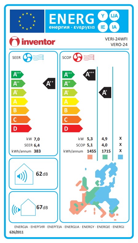 Τα κλιματιστικά Inventor είναι πιστοποιημένα από τον οργανισμό EUROVENT, για την ακρίβεια της υψηλής απόδοσής τους. Η πιστοποίηση αυτή εξασφαλίζει την ακρίβεια των τεχνικών χαρακτηριστικών όπως η ενεργειακή κλάση, η κατανάλωση ενέργειας και η στάθμη θορύβου.