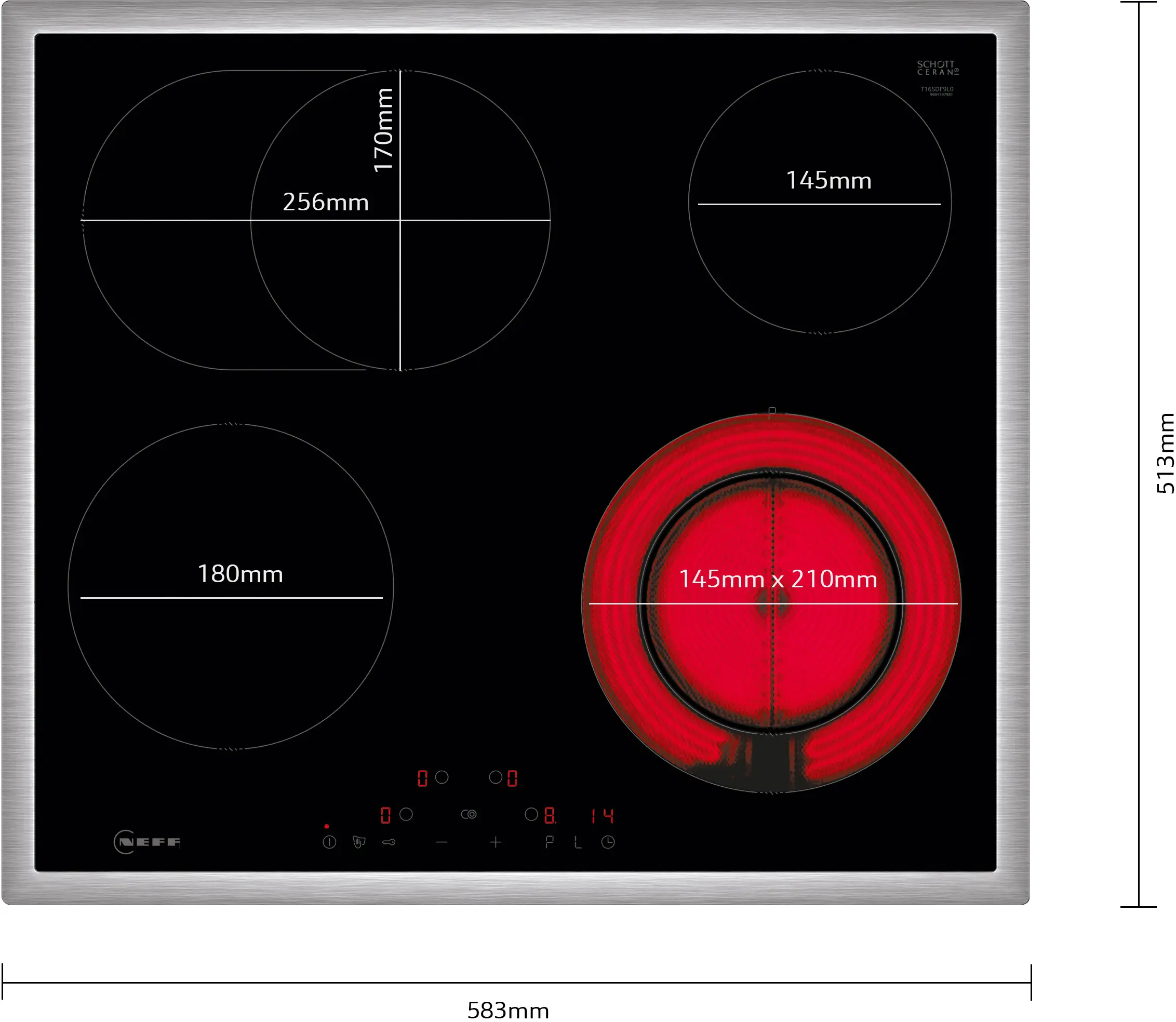 Neff T16SDF9L0 Aυτόνομη Κεραμική Εστία με Inox Πλαίσιο & Λειτουργία Κλειδώματος, Π58,3xB51,3, Μαύρη