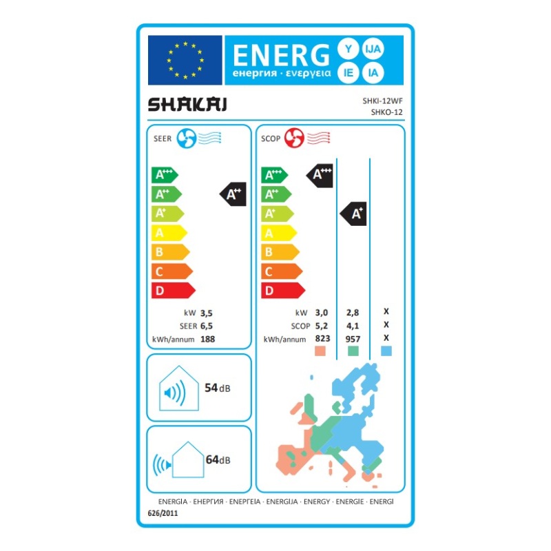 Shakai SHKI-12WF/SHKO-12 Οικιακό Κλιματιστικό Inverter 12000BTU, Wifi, A++/A+++, Λευκό