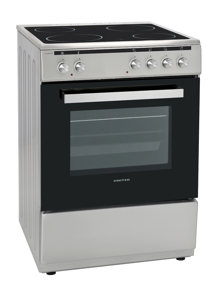 United UFV-68279T Ελεύθερη Κουζίνα 69lt, με Κεραμικές Εστίες, Π60εκ, Α, Inox