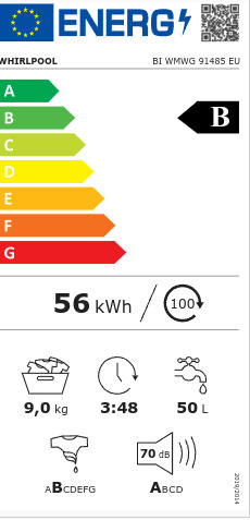 Whirlpool BI WMWG 91485 EU Εντοιχιζόμενο Πλυντήριο Ρούχων 9kg, 1400 Στροφών, Β, Λευκό