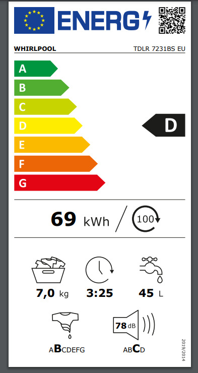 Whirlpool TDLR 7231BS Πλυντήριο Ρούχων Άνω Φόρτωσης 7kg, 1100 Στροφών, D, Λευκό