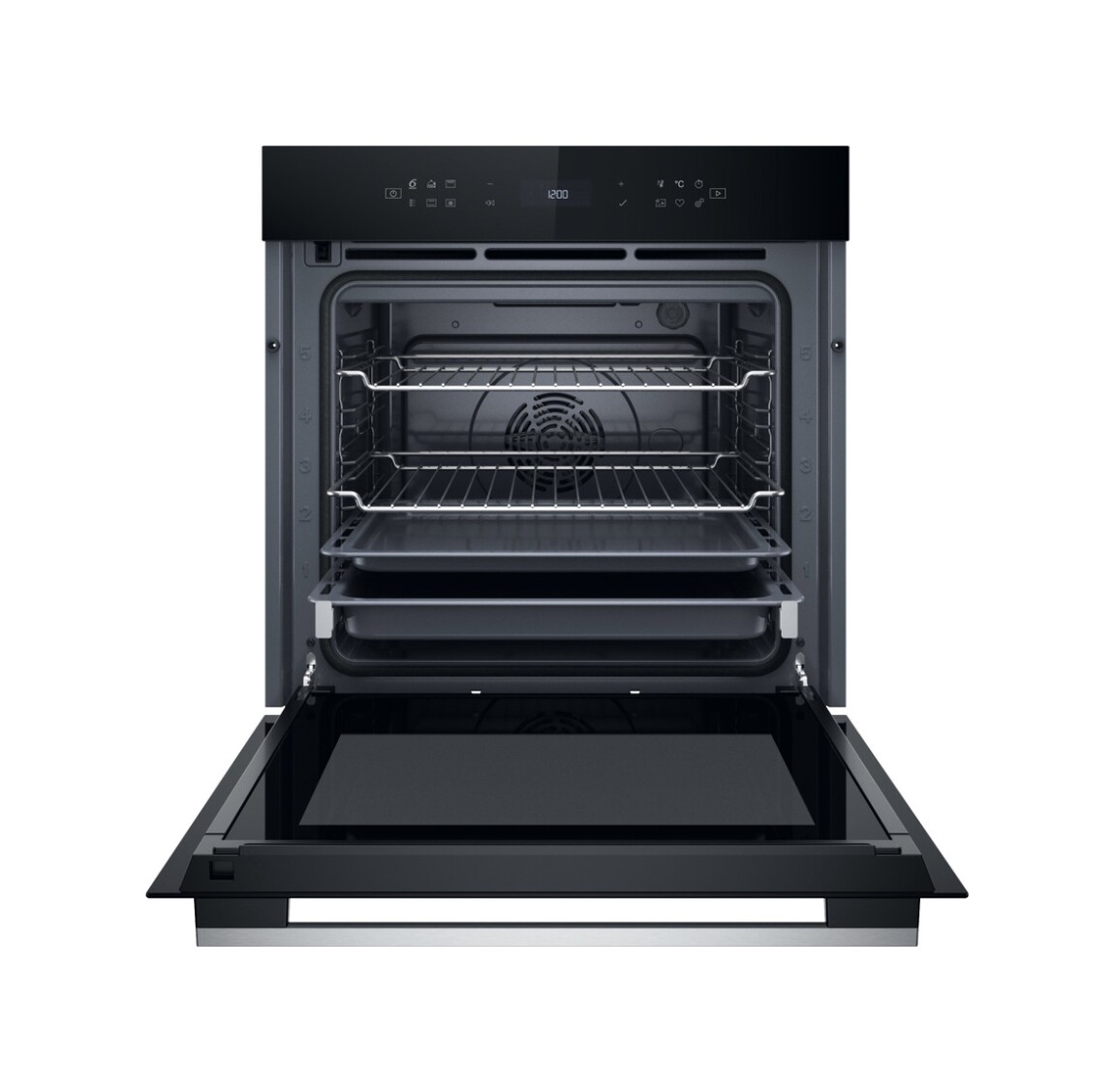 Χάρη στους μεντεσέδες απαλού κλεισίματος, η πόρτα του φούρνου κλείνει με αργή και αθόρυβη κίνηση.